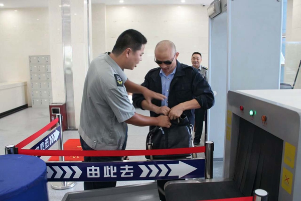 当日上午9时10分,当对讲机中突然传出安检处发生突发事件并请求警力支援的报告后,法警大队负责人立即下达“应急分队按处突预案携带装备立即到位进行处置” 口令。法警立即放下手中的工作,按照应急处置方案立即行动,出动法警12人、保安5人。不到2分钟,接到出警任务的警员已到指令地点集结待命,并按指示严格完成紧急集结的规定动作进行处置。