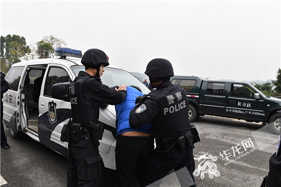 演练现场,在多部门的协同配合下,长寿警方迅速制服两名暴徒,及时化解了险情。
